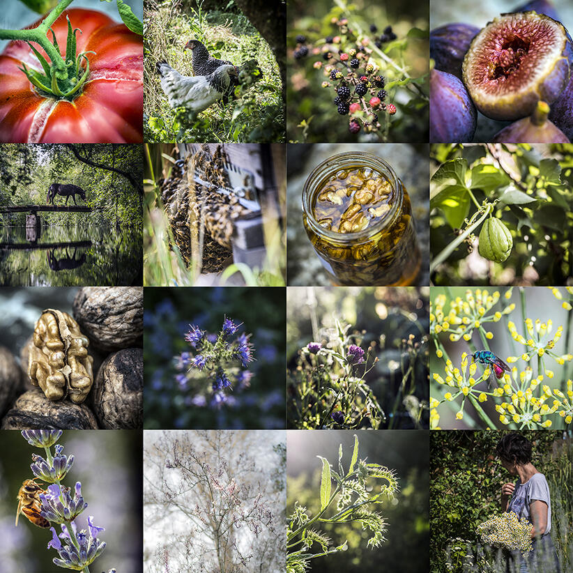 Depuis près de vingt ans Théo, le petit fils de Marceau et Nathalie, sa compagne, gèrent le domaine en permaculture dans le respect absolu de la biodiversité et de l’environnement.Le lieu abrite un potager sur sol vivant, un rucher mené en apiculture douce, un verger-poulailler expérimental, des plantes aromatiques et médicinales, des zones laissées sauvages qui accueillent une biodiversité abondante, plusieurs cours d’eau et des chevaux en liberté.